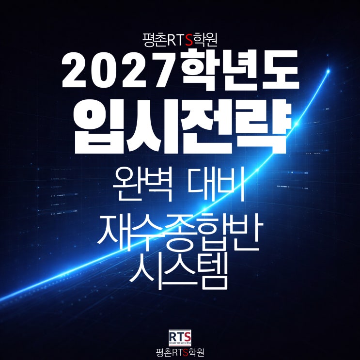 2027학년도 대입은 의대 정원 490명 증원(2026.2.10 발표)과 무전공·정시 확대가 동시에 이루어지는 중요한 해입니다. 저희 평촌RTS는 순공 시간 극대화, 철저한 생활관리, 그리고 M-note 기반의 메타인지 학습을 통해 ‘중킬러’ 대비에 집중하고 있으며, 이러한 시스템을 통해 재수생들의 성적 상승 가능성을 높이고 있습니다. 평촌rts학원 월별 시간표 평촌rts학원>시간표>재수반 시스템>학원관리 2027 대입 전략 리포트 [전략 리포트] 2027 대입, '마지막 기회'를 잡기 위한 평촌 RTS 시스템 적합성 진단 2027학년도 대입은 '격변 전야'의 마지막 승부처입니다. 2028 대입 개편(내신 5등급제, 통합형 수능)을 앞....... <img src="https://blogthumb.pstatic.net/MjAyNjAyMjNfMjU2/MDAxNzcxODE1NjI1OTYy.-7a_fIJeeczi48ne4AmavI46EFJ6Zac6AwWxORWLdi0g.bkMveUFH5gOF--Kc9-PnwZC-xkJNMDvil5YYYYQs-Lkg.JPEG/%BD%BD%B6%F3%C0%CC%B5%E51.JPG?type=s3" />