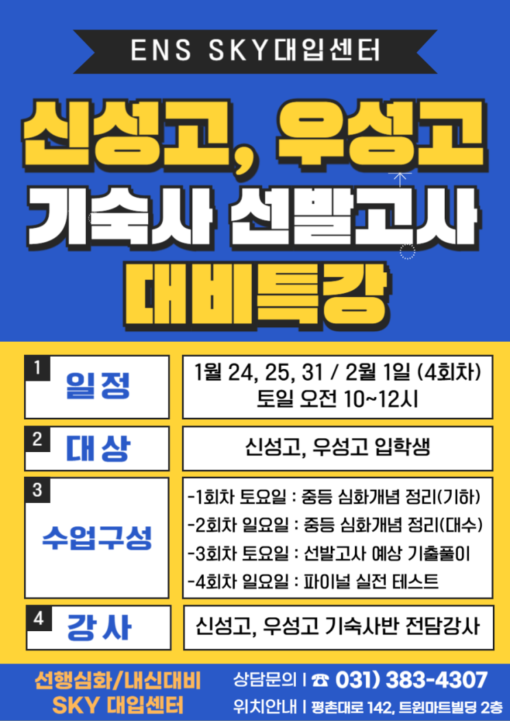 [SKY대입센터] 신성고, 우성고 기숙사 선발고사 대비 특강