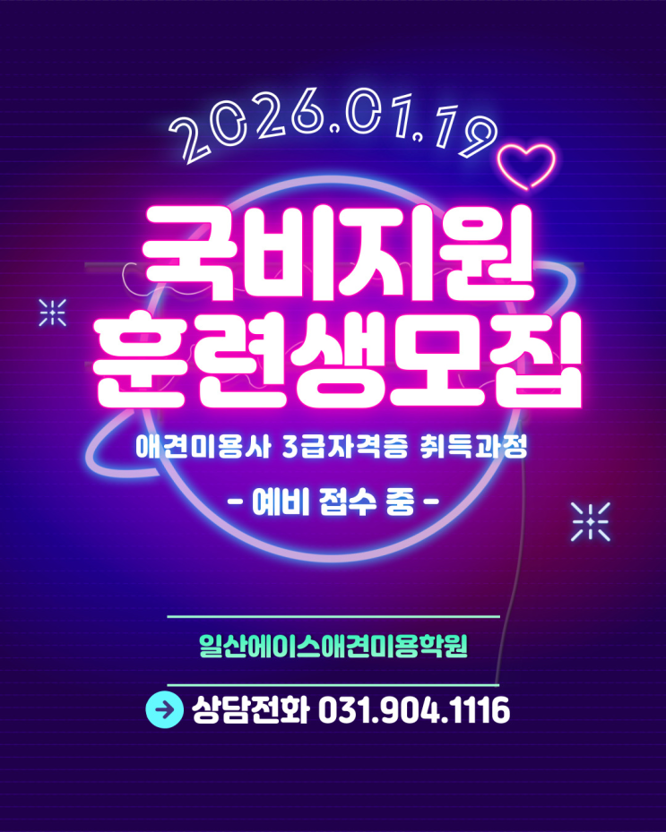 안녕하세요! 일산에이스애견미용학원입니다. 국비지원 애견미용 과정을 오랫동안 운영해온 일산에이스애견미용학원은 애견미용을 처음 접하시는 분들이 부담 없이 시작할 수 있도록 기초부터 실습까지 차근차근 배우는 교육을 이어오고 있답니다! 이러한 교육 경험을 바탕으로, 2026년 1월 19일, 국비 지원으로 수강 가능한 오전반 과정을 새롭게 개강하게 되었어요. 이번 과정은 오전 10시부터 오후 2시 10분까지 진행되는 수업으로, 하루 시간을 효율적으로 활용하면서 애견미용을 배우고 싶은 분들께 잘 맞는 일정입니다. 교육 기간은 1월 19일부터 7월 2일까지로, 기초 이론부터 실무에 필요한 실습까지 충분한 시간 동안 배우실 수 있어요. ....... <img src="https://blogthumb.pstatic.net/MjAyNjAxMDVfMjA4/MDAxNzY3NTUyNzA2NTA5.VjWr2fDQMPSSPR0AY5nsY9kYIza9wLoJ2SbTHep6bRcg.mog2EFYHND477iQGBpbmFtme2B6ibn96sUDoqwypLnEg.PNG/image.png?type=s3" />