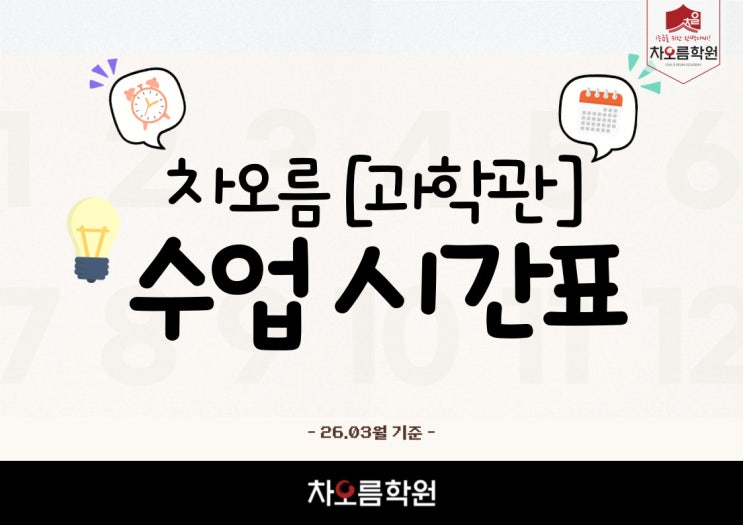 [차오름 과학 시간표] [ 중/고등부] 26.03~ 시간표 안내
