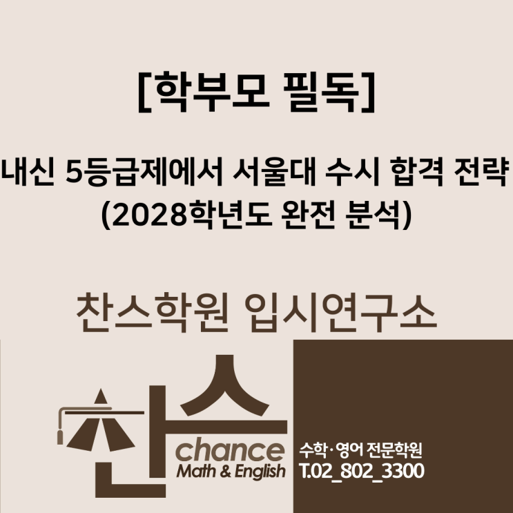[찬스학원 입시분석] 내신 5등급제에서 서울대 수시 합격 전략 (2028학년도 완전 분석)