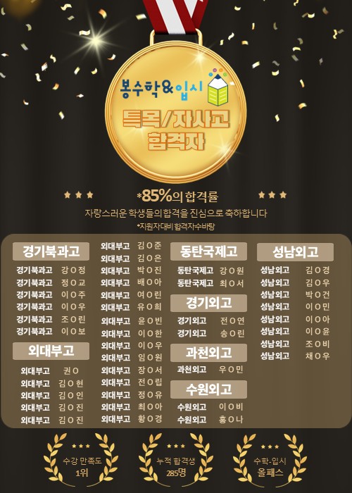 안녕하세요. 광명시 수학학원 봉수학입니다. 정입시쌤과 내신 관리, 학생부 관리, 자소서, 면접을 열심히 준비하며 합격한 특목/자사고 입시 결과를 공개합니다. 정입시쌤의 15년 입시 지도 경력 *약력* 前 천재교과서 밀크티 입시전략수석연구원 / 입시전략팀장 前 메가스터디/엠베스트 입시전략수석연구원 특목/자사고 합격을 희망하는 학생들의 수학 실력 향상과 '합격'을 위해 노력합니다 특목/자사고 합격자 2,800 여명의 데이터를 (학생부 분석, 자기소개서, 면접 후기 등) 바탕으로 여러분의 입시를 책임집니다. ※ 수학과 입시 전문가가 언제나 상담을 적극 도와드리겠습니다. ※ 010-5781-4321 #광명시수학학원봉수학 #하....... <img src="https://blogthumb.pstatic.net/MjAyNjAxMjJfMTE2/MDAxNzY5MDc2NjU4MTY3.9L75gDHGYHoDy9V1grBNNnLoJzk3K-D3VvYTxzC9Ge0g.96-QbjowYKTJTC13V-bxIYIWyv7yxTLbv0wxAQv8Zo8g.JPEG/%BD%BD%B6%F3%C0%CC%B5%E51.JPG?type=s3" />