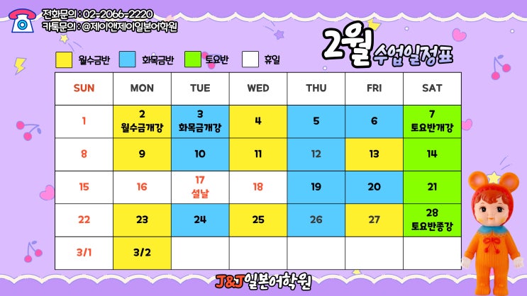 [가산일본어학원]2월 시간표