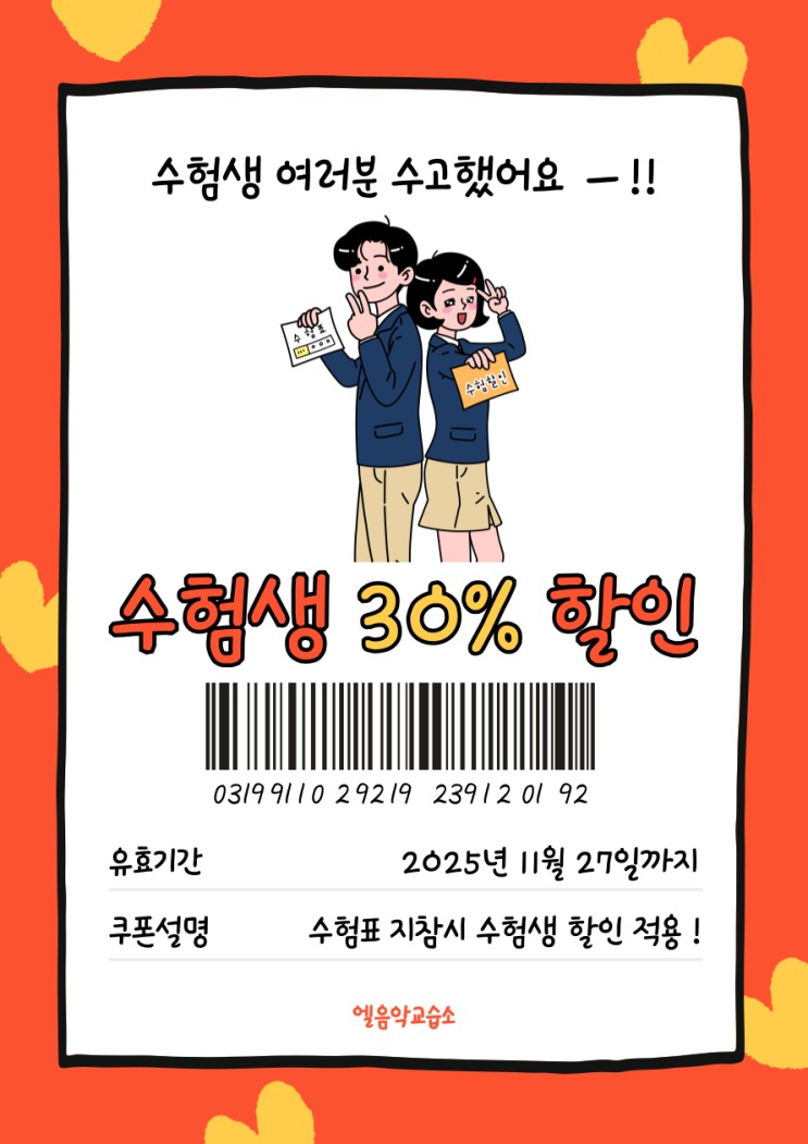 안산 고잔동 성인피아노 | 엘음악교습소 2025 수능 수험생들을 위한 30% 파격 할인 이벤트 ‼️❤️ (~11/27까지)