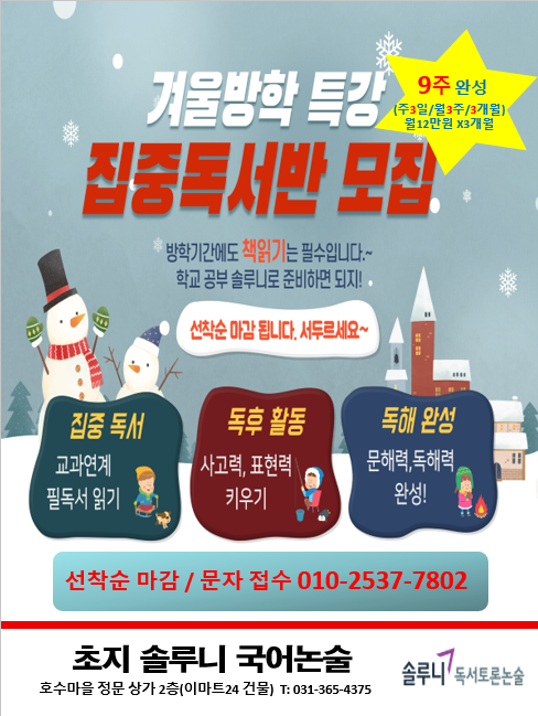 [초지동 솔루니 국어논술] 겨울방학 집중 독서반 모집!