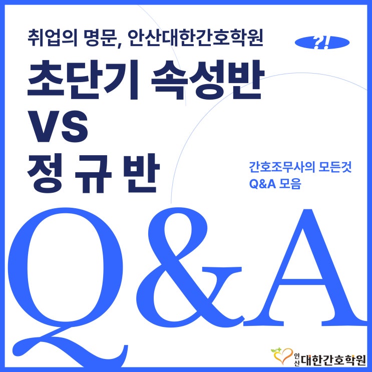 정규반 vs 초단기 속성반 ? 안녕하세요. 안산 간호조무사 취업의 중심, 안산대한간호학원입니다. 안산대한간호학원에는 ✅ 주간 국비반 ✅ 주간 일반반 이 있으며, 수업 운영 방식에 따라 정규반과 초단기 속성반으로 나뉩니다. 많이들 궁금해하시는 정규반 vs 초단기 속성반 차이, 지금부터 쉽게 정리해 드릴게요! ✅ 초단기 속성반은 이런 분께 추천드려요 교육 기간: 약 7~8개월 수업 종료 시간: 보통 오후 5시 전후 추천 대상: ✔ 자격증을 최대한 빨리 취득하고 ✔ 빠르게 취업하고 싶은 분 속성반은 수업이 비교적 집중적으로 진행되기 때문에 단기간에 자격증 취득 → 취업까지 빠르게 ! ✅ 정규반은 이런 분께 추천드려요 교육 기간....... <img src="https://blogthumb.pstatic.net/MjAyNTEyMDhfMjcw/MDAxNzY1MTc0OTA2MTQ0.YFCNdpSM_wZYPkQdJ2CPUVqscFMWooWJ28uki9lY7Y4g.M1xOcAO0s-o3uwfjx5vZryWEcZVS4c8G81NBj760j00g.JPEG/%B3%D7%C0%CC%B9%F6-%BA%ED%B7%CE%B1%D7_Q_%BA%B9%BB%E7%BA%BB-001.jpg?type=s3" />