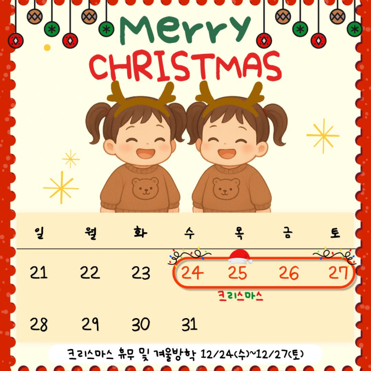 [수완지구 수학학원/장덕동 수학학원] 크리스마스 휴무 및 학원 겨울방학 휴무 일정 안내