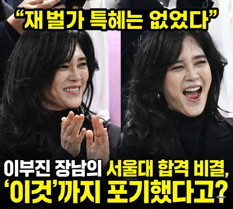 환경보다 빛난 태도, 이부진 장남의 서울대 합격이 주는 교훈 최근 이부진 호텔신라 사장의 장남 임 군의 서울대학교 합격 소식은 교육계에 신선한 충격을 주었습니다. 많은 이들이 재벌가 자녀라면 해외 유학이나 고액 과외를 떠올리지만, 그는 철저히 국내 교육과정만을 거쳐 성과를 냈기 때문입니다. 이 사례가 우리에게 주는 가장 큰 메시지는 "성공의 배경에는 환경보다 철저한 자기관리가 있었다"는 점입니다. 부유한 환경이 공부를 대신해 줄 수 없음을, 그는 스스로의 노력으로 증명해 냈습니다. 목차 1. 스마트폰과의 결별 – 도파민 중독을 이겨낸 3년의 절제 2. 양적 팽창이 질적 변화를 만든다 – 수학 2,000문제와 반복의....... <img src="https://blogthumb.pstatic.net/MjAyNjAyMjBfMjMg/MDAxNzcxNTUxMzUwMTMz.L_uxL01KjJm2sPgggZZaU96CmWhUz7EDJ_L9UGnlGKwg.Q-6Np4lidKx8D4inbuQWKud6uAs6CcD3mHPP2kjROgEg.PNG/image.png?type=s3" />