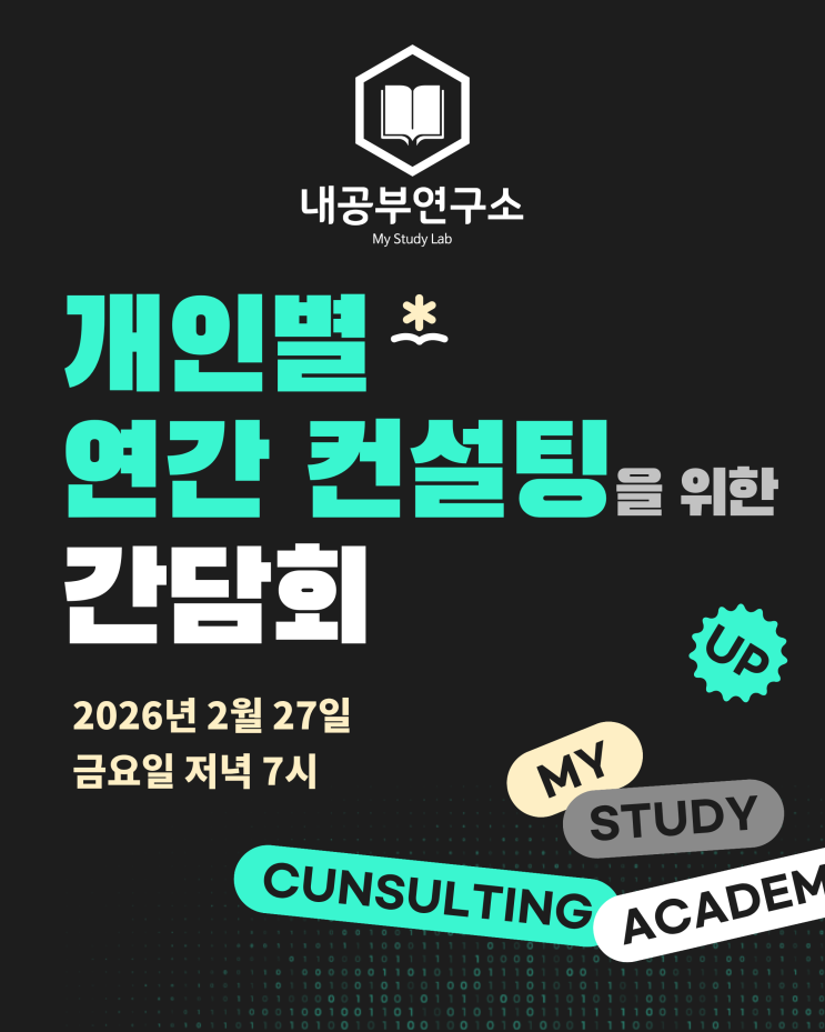 안녕하세요. 내공부연구소입니다. 내공 재원생들을 위한 <개인별 연간 컨설팅> 프로그램이 새롭게 개설되었습니다! 학생의 현재 위치를 정확히 진단하고, 그에 맞게 내신, 모평, 학생부 관리 등의 과정과 방법을 설계하는 맞춤형 컨설팅입니다. 현재 컨설팅에 대한 문의가 많아 프로그램을 소개하는 간담회도 함께 진행할 예정입니다. 이번 간담회에서는 ✔ 어떤 학생에게 개인별 연간 컨설팅이 필요한지 ✔ 우리 아이의 현재 위치를 어떻게 진단하는지 ✔ 내신·모평·학생부 관리를 어떻게 하는지 ✔ 실제 컨설팅은 어떤 방식으로 이루어지는지 를 구체적으로 안내해 드릴 예정입니다. 입시는 막연한 노력보다 정확한 방향 설정이 중요합니....... <img src="https://blogthumb.pstatic.net/MjAyNjAyMjBfOCAg/MDAxNzcxNTc1NTk4MDc0.LSnnC-fL4dF_HgLExRvZ3fPmr-B6x8qz_yUNWypGe3Mg.vMrdIFaLpafN80qVEjk4KgUZ0ZcFw7dbtlS-_kAv10Eg.PNG/1.png?type=s3" />