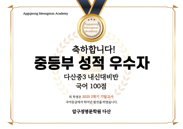 [다산직영원] 중등부 2025 2학기 기말고사 성적우수자 축하합니다!!