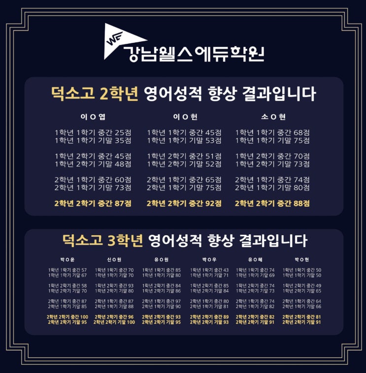 안녕하세요! 여러분의 영어 고민을 속 시원하게 해결해 드리는 강남웰스에듀학원 입니다. 오늘은 정말 드라마틱한 성적 향상을 이뤄낸 덕소고 학생의 놀라운 이야기를 들려드리려고 합니다. 이 학생은 처음에 영어를 너무 어려워해서 저희 학원에 왔을 때 20점대라는 낮은 점수로 시작했습니다. 하지만 꾸준한 노력과 저희 학원만의 특별한 학습 방식 덕분에, 마지막 시험에서는 무려 87점이라는 고득점을 성공적으로 달성했습니다! 왜 강남웰스에듀학원의 학생들은 결국 고득점을 할까요? 저희 학원의 가장 큰 특징이자 핵심 경쟁력은 바로 손채동 원장님의 암기 없는 원리 이해 학습법 입니다. 원장님 강의 특징 1.무작정 암기 NO! 단....... <img src="https://blogthumb.pstatic.net/MjAyNTEyMDZfMjg2/MDAxNzY0OTc0NzU3NDU3.b7QNv3YHdx2aB2QJk4O5f1REKicS2e7Q3i91xUklG_Qg.RlvOUFADbVedUsCZlOCfgdrGbUduBPYE5QcdPDUbBzYg.JPEG/KakaoTalk_20251206_073530605.jpg?type=s3" />