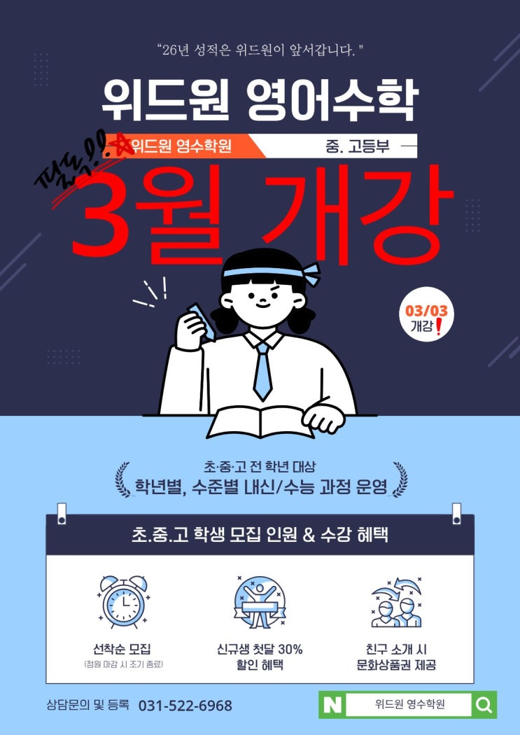 2026년 1학기 중간고사 [중·고등 내신] 개강 일정 안내!!-본원.진건지구 캠퍼스 동시 개강