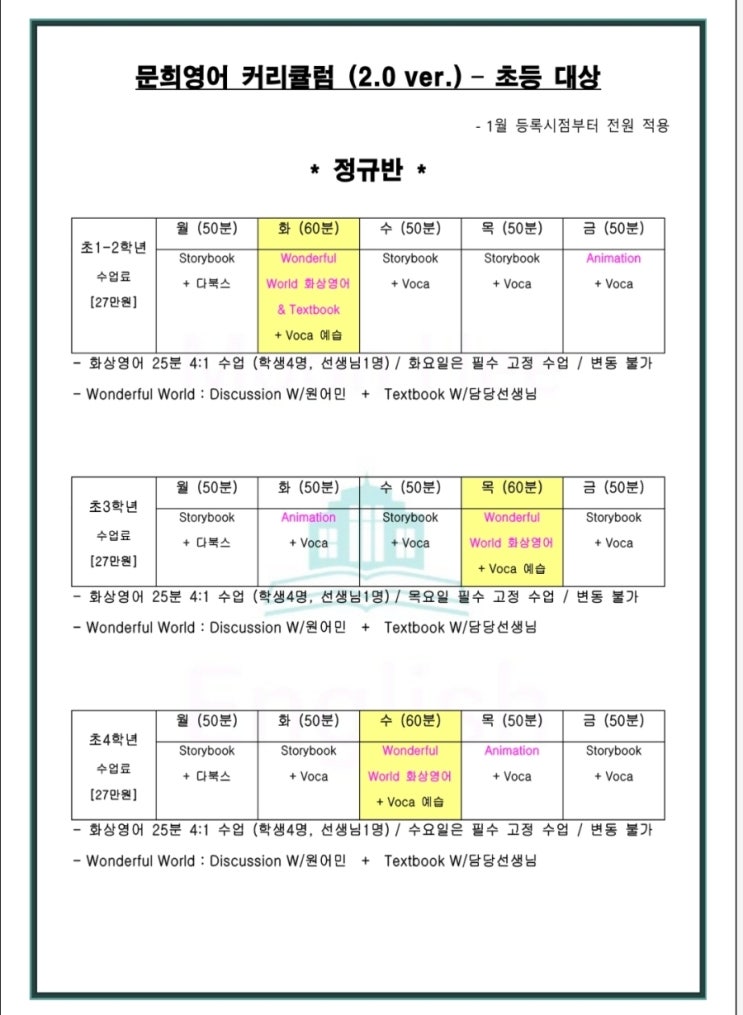 [2026년도] 초등 커리큘럼과 교육비