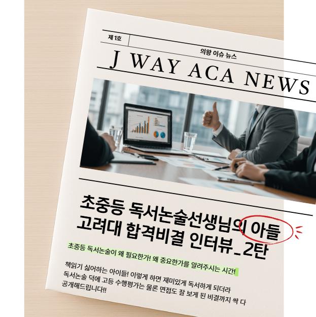 #의왕초등국어 #의왕독서논술학원 #덕성초학원 #의왕제이웨이아카데미 #고려대합격비결 #고려대합격하려면 초중등 독서논술로 고려대합격한 비결 솔직 인터뷰 비법전수_1탄 포스팅 ▲ 안녕하세요★ 오늘은 1탄에 이어 2탄! 초중등 독서논술로 고려대합격까지 한 비결! 저희 초중등 독서논술 선생님의 솔직한 인터뷰 + 꿀팁을 본격적으로 풀어보려 합니다 前 포스팅에서 우리는 아래 4개로 Q&A 시간을 가져봤죠 :) 1. 독서논술! 언제부터 시작하면 좋은가 2. 아이들이 책읽는 걸 무척 싫어하는데 어떻게 책을 즐겨보게 할 수 있을까! 3. 아이들이 겨우 책을 읽어도 흥미있는 책, 만화책 같은 책만 읽으려 하는데 다양한 분야의 책을 읽게하려....... <img src="https://blogthumb.pstatic.net/MjAyNjAyMTJfMTEz/MDAxNzcwODgyMDE2ODI3.BpnWbDdM4MXB_GABGZtK7vWUiOK-HFBnHxjZiSNKd8og.Q0nBS1vGOXv0gqsmUNcVGYd1fyX3R5l2iP3KcXiUPcMg.PNG/image.png?type=s3" />