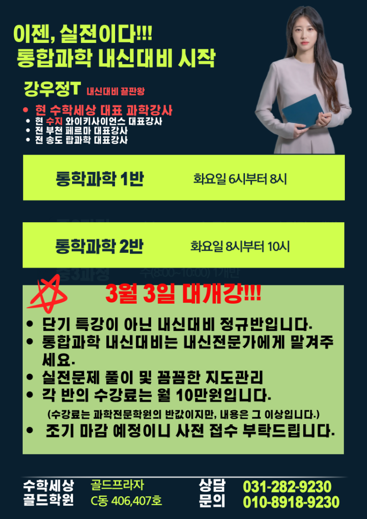 3월 부터 골드에서 통합과학 내신반이 개강합니다!!!