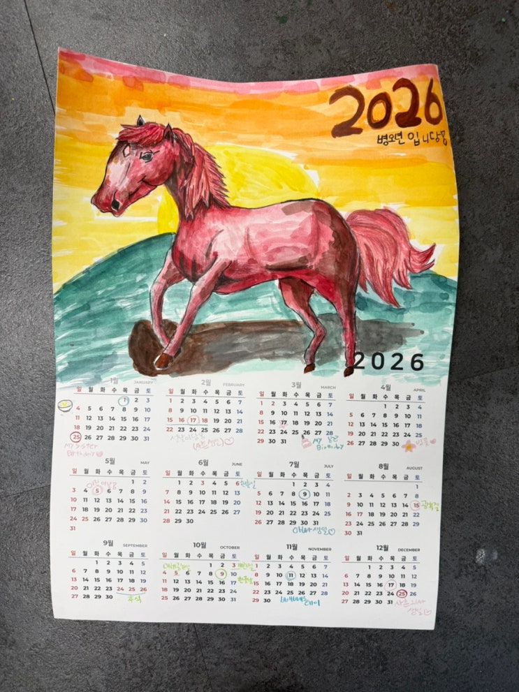 [신봉동 미술] 연령별 수업-병오년을 맞이하여 붉은 말 달력 작업해보았어요