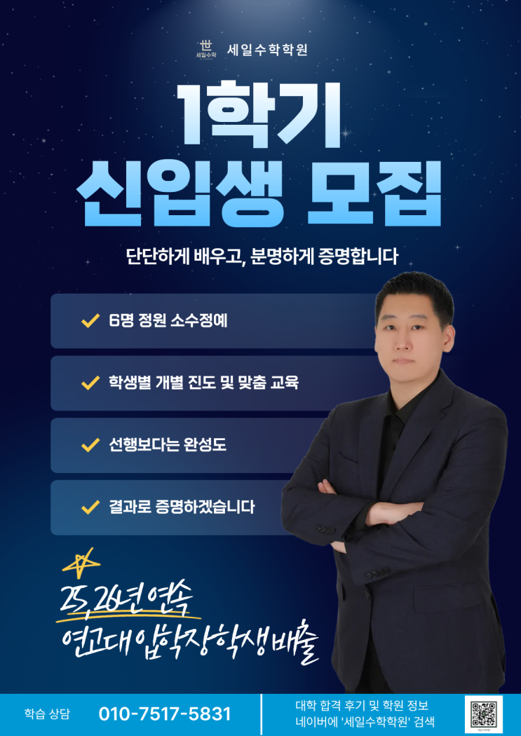 새 학기가 시작됩니다. 설렘과 함께, 새로운 다짐이 필요한 시기입니다. 수학 공부는 선행보다도 학습 방법이 훨씬 중요합니다. 세일수학학원은 빠른 진도보다 완성도 있는 이해를, 많은 문제보다 깊은 사고력을 키우는 것에 집중합니다. 왜 세일수학인가요? 소수정예라는 문구는 흔합니다. 그러나 저희는 단순히 소수정원만을 내세우지 않습니다. 외고 및 국제고 학생들의 높은 재원 비율, 소수 인원임에도 불구하고 매년 이어지는 의미 있는 입시 결과가 말 그대로 ‘정예’ 라는 타이틀을 증명하고 세일수학의 밀도를 보여주고 있습니다. 선행보다 “완성도”를 먼저 잡는 커리큘럼 학생별 학습 데이터 기반 관리 결과는 방향이 맞을 때 따라....... <img src="https://blogthumb.pstatic.net/MjAyNjAyMTVfODgg/MDAxNzcxMTMwNDY2Mzk3.Y4On0H50RTwnZv8NVWuQGQTv4tETGZjfIntVn9GbYt4g.qUse6cYrec4ls553sFoJppkKvdWUlQonlAGhmSxauvEg.PNG/%BD%C5%C7%D0%B1%E2_%C6%F7%BD%BA%C5%CD.png?type=s3" />