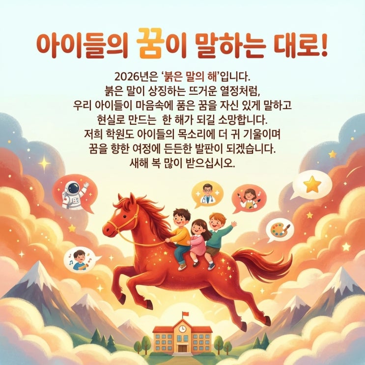 새해가 된다고, 아이가 갑자기 달라지지는 않습니다. 안녕하세요. DNA수학학원 원장 소현정입니다. 새해가 되면 아이에게도, 어른에게도 괜히 마음이 바빠집니다. “이번엔 달라져야지.” “올해는 더 열심히 해볼게요.” “올해는 꼭 잘해보자.” 하지만 솔직히 말하면, 새해가 된다고 아이가 하루아침에 달라지지는 않습니다. 수학을 어려워하던 아이가 1월 1일을 기준으로 갑자기 자신감을 갖게 되지도 않습니다. 그래서 저는 새해를 맞을 때마다 늘 같은 질문을 제 자신에게 던집니다. “나는, 아이의 성장을 기다릴 준비가 되어 있는 어른인가.” 아이들은 ‘가르침’보다 ‘옆자리’를 기억합니다 '막혔을 때 옆에 앉아주던 시간'....... <img src="https://blogthumb.pstatic.net/MjAyNjAxMDFfMjYz/MDAxNzY3MjU1MzgzMTM3.PsrqxHApFzyB4Qlcf6b35nxoWZL_smuvmkdXeCPYz1Mg.xv1vNd-dObheLOBLGukAhyi3_dQHQfAgUyRZhEaJYnwg.JPEG/KakaoTalk_20251231_224138476_09.jpg?type=s3" />