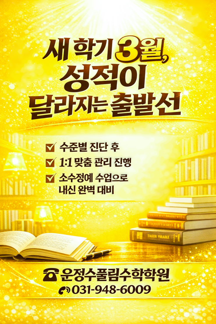 안녕하세요~ 제이쌤입니다. 3월 새학기를 앞두고 설레이는 친구들, 늦잠못잘 생각에 아쉬운 친구들 있겠지요? 입학을 앞둔 초1, 중1 ,고1 되는 친구들의 새로운 환경적응을 응원합니다~~~^^ 3월 2일(월) 대체공휴일은 정상수업으로 진행됩니다. 3월도 알차게, 즐겁게 수업하겠습니다. 수업 문의시, 문자로 학년/학교/이름 간단히 남겨주시면 수업 외의 시간에 연락드리도록 하겠습니다. 감사합니다~ <img src="https://blogthumb.pstatic.net/MjAyNjAyMTlfNjkg/MDAxNzcxNTA3MTcwOTk5.rZTBm35Us5AK_dJDQCr-k001GKKNYbjjNhIyGcnzXQgg.D3v-vLDSCAxWDooNHxY8TN-9LygvtuBqaEzgR9q76mAg.JPEG/%C1%A6%B8%F1%C0%BB-%C0%D4%B7%C2%C7%D8%C1%D6%BC%BC%BF%E4__%BA%B9%BB%E7%BA%BB-_4_-001_%284%29.jpg?type=s3" />