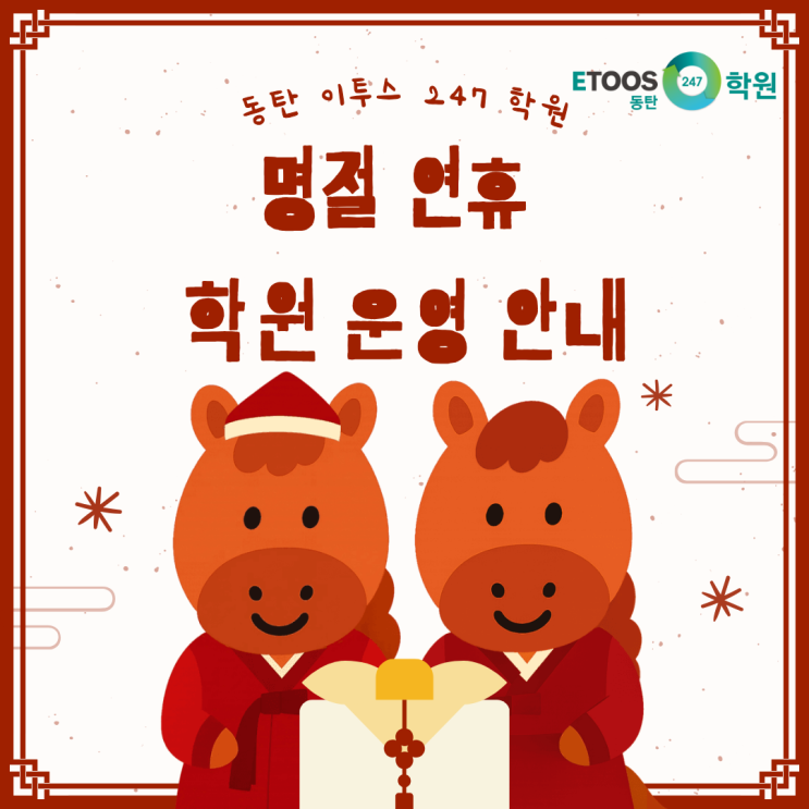 [동탄 이투스 247 학원] 2026년도 설 명절 연휴기간 학원 운영 안내