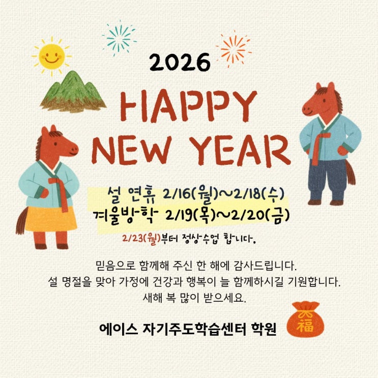 스스로 공부하는 바른습관 에이스 자기주도학습센터에서 함께 만들어 갑니다. 감사합니다. <img src="https://blogthumb.pstatic.net/MjAyNjAyMTJfMzkg/MDAxNzcwODk2Nzg2NTI0.nsqbS-qYZgVfnYBpAbdzdfbiYm_Xzjqm1CtLPJME3aMg.biknYrgrKQR2PLfur_WUp1mpVJnaK0yM4k2BASohFCog.JPEG/2026_%BB%F5%C7%D8_%C0%CE%BB%E7_%281%29.jpg?type=s3" />