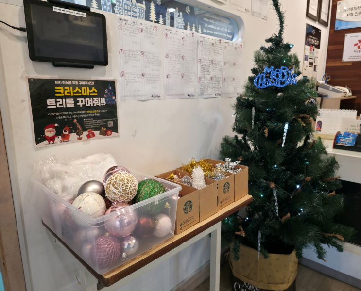 [플러스수학학원] 우리가 직접 꾸미는 크리스마스 트리 이벤트 안녕하세요, 이문동 플러스수학학원입니다. 학원에도 벌써 겨울이 성큼 다가왔어요. 교실에서 창밖을 보면, 차가운 바람이 불어오는데… 우리 아이들의 마음만큼은 따뜻했으면 좋겠죠? 그래서 올해는 아이들이 직접 참여하는 크리스마스 트리 꾸미기 이벤트를 준비했습니다! 학원 입구에 “내가 만든 트리”가 딱! 학원 입구에 큰 크리스마스 트리가 설치되어 있고, 그 옆에는 반짝반짝 예쁜 장식들이 가득 담긴 상자가 준비되어 있어요. 반짝이는 볼 장식 눈송이, 별, 리본, 방울 작은 미니트리와 금빛·은빛 가랜드까지 ✨ 아이들이 학원에 오면, 수업 전에 잠깐, 쉬....... <img src="https://blogthumb.pstatic.net/MjAyNTEyMDFfMjQz/MDAxNzY0NTY3NDEwNTMy.illBXe2lKaWemV7XTqY9EuIGa69FU6A5C9jFsIEMb4Yg.tSnclIBD2XtQLU1IZ7eD4I6gciLXgXbsFNQxGkpZRm0g.PNG/image.png?type=s3" />