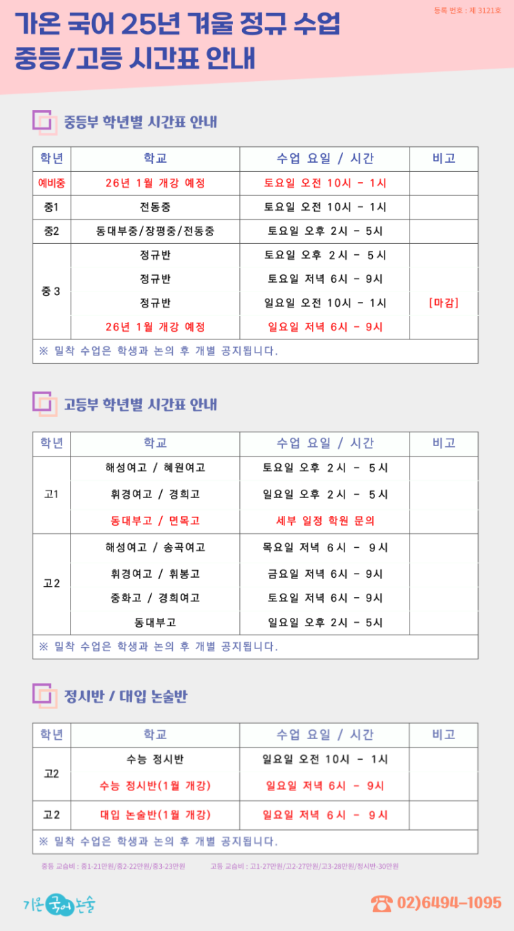 안녕하세요. 영어의 새로운 패러다임을 만들어가는 동대문구 장안동에 위치한 중·고 영어전문학원 Englead 잉글리드 어학원입니다! 엊그제 25년 새해 인사를 드린 것 같은데 벌써 한 해를 마무리 해야 하는 12월의 학사안내문을 작성하고 있습니다. 남은 한해 잘 마무리하시길 바라며, 추운 날씨에 독감 환자가 급증하고 있는데, 건강 유의 하시기 바랍니다. 12월은 한 해의 학습을 정리하고 다음 학기를 준비하는 시기입니다. 아래는 겨울학기 동안 운영되는 핵심 학사 일정과 프로그램 안내입니다. 일정 확인하시어 방학 동안 학생들의 학습 계획에 참고 하시면 좋겠습니다. 오늘은 잉글리드 2025년 12월 학사안내문 으로 인사드렸습니다. 잉글....... <img src="https://blogthumb.pstatic.net/MjAyNTExMjhfMjcx/MDAxNzY0MzM1OTQ1MjMy.fpmr5TiteFZHKHFkE6ViyL9UYJ1r6MnpjZfQEkKA7dAg.GtZUiFCOalFlDwMzBplgULtXA0fPXdmBZsKKn3SsDxcg.JPEG/001_1.jpg?type=s3" />