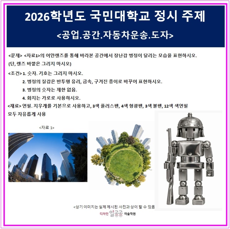 2026학년도 정시 가군 국민대학교 기초조형평가 주제 공유 및 면접장 분위기와 면접 질문등 면접 후기남깁니다_중랑구디자인일공공미술학원