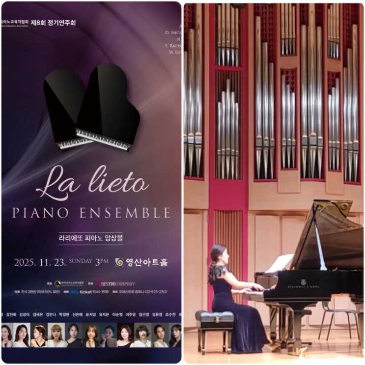안녕하세요~ 피아노리 음악학원입니다. 어제는 원장 선생님의 연주로 한 해를 마무리하는 시간을 가졌습니다. 피아니스트이자 교육자로서, 앞으로도 아이들에게 더 좋은 지도와 음악적 경험을 전해드릴 수 있도록 항상 최선을 다하겠습니다. 늘 학원과 아이들을 믿고 응원해주셔서 진심으로 감사드립니다. <피아노리음악학원> ️ 체계적인 1:1 맞춤레슨 ️ Visual Thinking 교습법 (시각적교육) - 빠르게 계이름 파악 - 음형분석으로 악보를 쉽게 읽음 ️ 자체제작 교구와 교재, 다양한 특강수업 ️ 총 10개의 연습실(기다림없이 연습가능) ️ 연주영상과 함께 학원생활 브리핑 ️ 등하원 안심문자 ️ 총....... <img src="https://blogthumb.pstatic.net/MjAyNTExMjRfMSAg/MDAxNzYzOTY4MDk5MTcw.9lhFb3UeGBjiMyscb8R6zUVdFEC3zPxYgdG8u1P5v4gg.6hwtmlUiGfqzp0EQv2yPGXxrnJhy33qOnTaaeZnXhCAg.JPEG/900%A3%DF1763965126113.jpg?type=s3" />