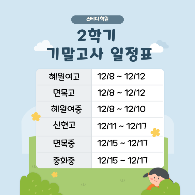 2학기 기말고사 일정표