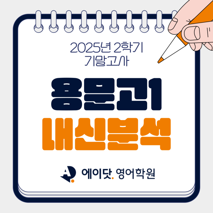 안녕하세요! 에이닷 영어학원 성북점입니다 오늘은 용문고등학교 2학년 2학기 기말고사 영어 시험 분석 자료를 공유해드리려고 합니다. ✨ 시험 한 줄 요약부터 볼까요? ✔ 체감 난이도 : 하 ✔ 시험 성격 : 변형 난이도가 낮고, 출제 방향이 비교적 안정적 ✔ 변형 비율 : 낮은 편 (비변형 중심) ✔ 핵심 포인트 : 지문 흐름 이해 + 시간 운용 ✔ 요구 역량 : 서술형 + 영작 + 요약문 지문의 난이도는 높지 않았지만, 기본 개념과 지문 이해를 중심으로 학습했는지를 차분히 확인하는 시험이었습니다. 시험 구성, 왜 이렇게 느껴졌을까요? 이번 기말고사는 부교재 지문의 비중이 가장 높았습니다. 이는 결국 용문고 영어 내신이 단순....... <img src="https://blogthumb.pstatic.net/MjAyNjAxMTJfMTc1/MDAxNzY4MjE5MTk3OTg4.FsqT2esjaaTdURf80iBA4VkQ8YLIvz-6aV-MCKroGqEg.0eH7MQVnjgOGhfbWcMhICxZhMJNvd8Gu-bxeN2BOUG4g.PNG/%C1%A6%B8%F1%C0%BB-%C0%D4%B7%C2%C7%D8%C1%D6%BC%BC%BF%E4_-002.png?type=s3" />