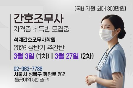 안녕하세요 석계간호조무사학원입니다! 아이 새학기가 시작되면 가방도, 준비물도, 시간표도 새로 정리됩니다. 그 모습을 보며 문득 이런 생각이 들지 않나요? “나는 언제 마지막으로 나를 위해 시작해봤을까?” 아이를 키우는 시간 동안 우리는 자연스럽게 누군가의 ‘엄마’로 살아갑니다. 그 이름이 자랑스럽지만, 한편으로는 내 이름이 조금 멀어진 느낌이 들 때도 있습니다. 그래서 새학기는 아이만의 시작이 아니라 엄마에게도 다시 시작해볼 수 있는 계절이 될 수 있습니다. 엄마라서 더 잘 할수 있는 일 간호조무사라는 직업은 화려한 스펙보다 사람을 이해하는 마음과 세심함이 더 중요합니다. - 작은 변화도 놓치지 않는 관찰력 - 아....... <img src="https://blogthumb.pstatic.net/MjAyNjAyMTJfMjUg/MDAxNzcwODcwMzkxNTc0.N11guZdqpAF5IVCNxcvpzEmB5VEgseo2ZWrTigzhJWMg.Da8Z0M7EFiQZkZNCYgYKrMsAEca_1E4ccK_BwcQdtJQg.JPEG/1.jpg?type=s3" />