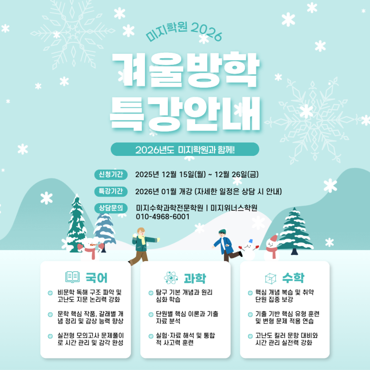 겨울 방학, 수학 성적 역전의 기회! 놓칠 수 없는 미지학원 특강 필참 이유 (초/중/고 전 학년)