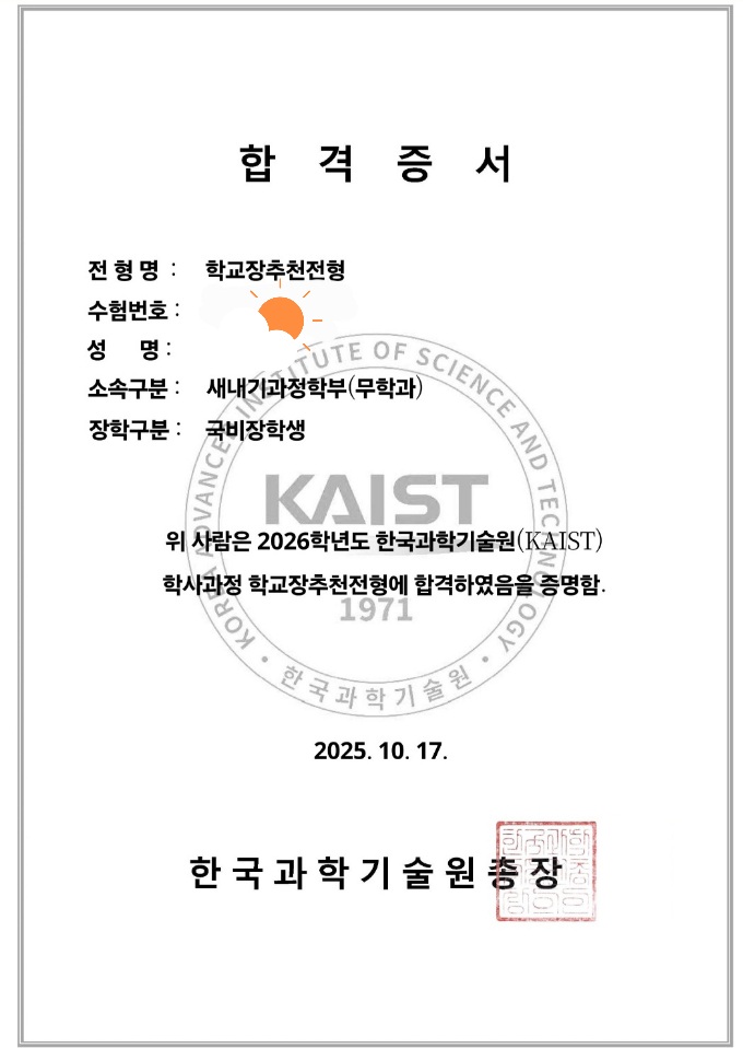 평범한 중학교 2학년이 카이스트 KAIST 합격생이 되다