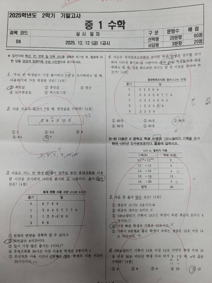 안녕하세요. 연세수학스터디입니다. 오늘은 이번 기말고사에서 성적상승을 기록한 많은 학생들 중 한 학생의 사례를 분석해보고 앞으로 좀 더 나은 수학학습을 지도할 수 있도록 해당 사례를 참고해보고자 합니다. 사례-00여중 1학년 이00 2학기 기말고사 수학점수- 100점 (지난 중간고사에서 92점을 획득하고 이번시험에서 100점을 기록했습니다) 해당 학생은 초등학교 5학년부터 저희 학원에서 수학공부를 하였습니다. 처음에 학원에 왔을때, 조용하고 얌전히 수업에 참여하는 학생이었으며, 초등학교 당시에 학교에서 시험을 치면 90점 정도를 기록하는 학생이었습니다. 기본개념이 탄탄한 편에 속했으며, 이해력도 괜찮은 학생이었습니다. 다....... <img src="https://blogthumb.pstatic.net/MjAyNTEyMThfMjgz/MDAxNzY2MDQ5NDk4MTQx.J3qNhR3VpwjiC0zSTkLvqer2rQBkinDczDtgb-dhT78g.4OV4ez1KYbZ8Cp2fgN-O43Y1guyyPfsU0SBad03ubPsg.JPEG/20251218_163733.jpg?type=s3" />