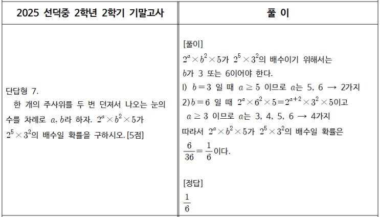 [수미사 선덕관] 선덕중 2학년 2학기 기말고사 수학 기출분석(2025년)