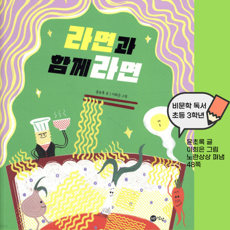 국민 주식과 국민 간식의 경계를 넘나드는 음식이 있다면 무엇일까요? 라면을 얼마나 자주 먹는지, 가장 좋아하는 라면은 무엇인지 등 아주 즐겁고 흥미롭게 수업한 책입니다. 필독서 소개 야식으로 라면을 먹는 종윤이 가족이 나누는 대화를 통해 라면에 관한 여러 가지 정보를 알 수 있는 책입니다. 한국 최초의 라면은 어떻게 만들어졌는지, 라면의 면발은 왜 꼬불꼬불하게 만들었는지, 라면을 먹고 자면 다음날 얼굴이 붓는 이유는 무엇인지 등 다양한 정보를 알게 되고, 건강하게 라면을 즐길 수 있는 방법도 생각해 볼 수 있습니다. 문해력 키우기, 어휘 확장 알맞은 표현을 고르고 소리 내어 읽어보며 감각적 표현의 효과를 알아보았습니....... <img src="https://blogthumb.pstatic.net/MjAyNTExMjhfMTcx/MDAxNzY0MjYwMDE5MDI3.TMJKpI5HvGrscixZKSGDpAUboXdXwpWl-qTsoX1vMacg.rGpudCDoU4pKXZ4FMx_zRfzD_7pqka6LXJgYqg2QKEog.PNG/%B6%F3%B8%E9.png?type=s3" />