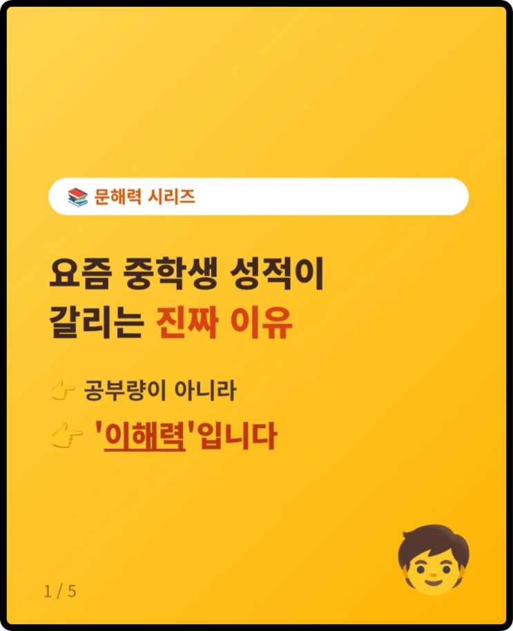 “요즘 중학생 성적이 갈리는 진짜 이유” 문해력은 평균이 아니라 ‘격차’의 문제입니다 “우리 아이, 열심히는 하는데 왜 성적이 안 오를까요?” 요즘 상담에서 가장 많이 듣는 질문입니다. 그런데 아이들을 자세히 보면 공통점이 있습니다. 공부를 안 하는 게 아니라 ‘이해를 못하는 상태’입니다 요즘 중학생 문해력의 핵심 많은 분들이 “문해력이 떨어졌다”고 생각하시지만 사실 더 정확한 표현은 이것입니다. “문해력은 떨어진 게 아니라, 벌어졌습니다” 요즘 중학생 문해력은 ‘평균 문제’가 아니라 ‘격차 문제’입니다 ❗ 같은 교실, 전혀 다른 이해력 실제 수업에서 보면 어떤 아이는 지문을 읽고 바....... <img src="https://blogthumb.pstatic.net/MjAyNjA0MDRfODcg/MDAxNzc1MzE0MzM4Mzc3.knW9alcua7-ZiSALc-N3q4d7-wekfr-vlscIB1HF6csg.NSfwtksqYQoGJX5CQkkNeeUJZIsS49A7ktoTmufYUuYg.PNG/900%A3%DF20260404%A3%DF220144%A3%DF0000.png?type=s3" />