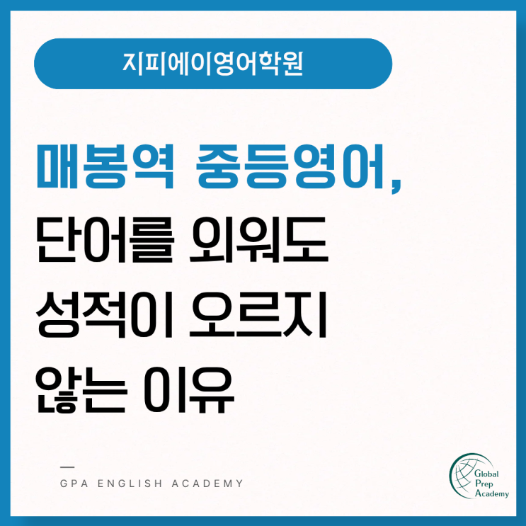 안녕하세요. 지피에이영어학원 원장 정승주입니다. 요즘 상담을 하다 보면 이런 고민을 가지고 계신 학부모님들이 많이 계세요. 선생님, 단어를 많이 외운다고 외웠는데 왜 성적이 그대로일까요? 어려운 어휘도 암기하고 있는데 독해 점수가 잘 안 나와요. 영어 성적이 정체되면 가장 먼저 생각하시는 부분이 '어휘 부족'이죠. 독해에서 막히는 이유가 어휘 때문일까 하는 생각에 더 많은 단어를 외우려고 했던 경험 한 번쯤 있으실 텐데요. 그런데 막상 제가 현장에서 11년간 학생들을 지도해 보면, 어려운 단어를 많이 안다고 해서 꼭 영어를 잘하는 것은 아닙니다. 그래서 오늘은 어휘보다 먼저 점검해야 할 부분이 무엇인지에 대해....... <img src="https://blogthumb.pstatic.net/MjAyNjAyMTBfMjU4/MDAxNzcwNzE4NDUwNzI4.dUFPrMo43io3gidSVma8Azqru1UGlKPraB7swykz3JYg.Cvp7ou1-yLf14_kv1S7g9cXVv_Rai92UgO5GJqKRxfUg.PNG/1.png?type=s3" />