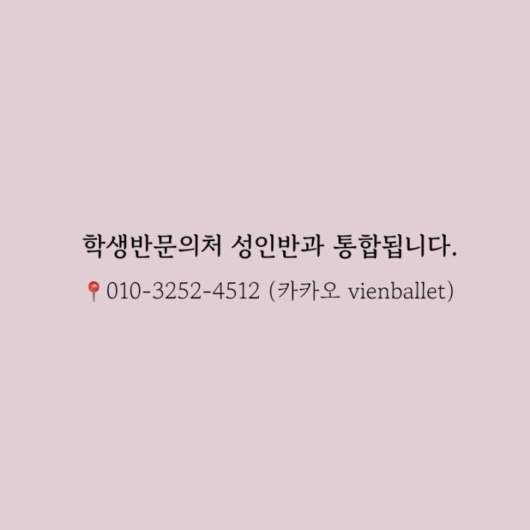 안녕하세요! 2026년 부터 학생반과 성인반 연락처가 통합됩니다. 은평뉴타운발레학원/ 구파발발레학원/ 은평뉴타운성인발레/ 구파발성인발레 균형잡힌 바른 몸을 위한 아름다운 움직임, 비엔발레아카데미 성인반_ 010.3252.4512 kakao vienballet 방문상담 예약제 은평구 진관2로 21-29 드림스퀘어 7층 인스타그램 www.instagram.com/vien_ballet/ #은평뉴타운발레 #은평뉴타운성인발레 #은평뉴타운발레학원 #은평뉴타운초등발레 #은평뉴타운유아발레 #구파발성인발레 #구파발발레 #구파발발레학원 #구파발초등발레 #구파발유아발레 #은평구발레 #은평구성인발레 #은평구발레학원 #은평구초등발레 #은평구유아발레 #삼송발레 #삼송성인발레 #....... <img src="https://blogthumb.pstatic.net/MjAyNjAyMDJfNTAg/MDAxNzcwMDMxNDMyODk1.2T42ZnEfxRUQcCN_NrCIACLfecp9KU4sncoFyXJ3z8cg.Q7I4-7qOEXDsK7Q9WWqFlnUiSuhU7plGZSY8Wjm1K-Eg.JPEG/IMG%A3%DF5689.jpg?type=s3" />
