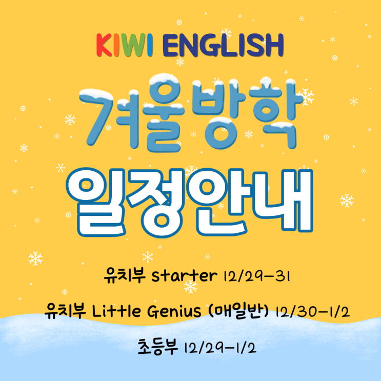 마포영어학원 키위잉글리쉬 겨울방학 일정 안내