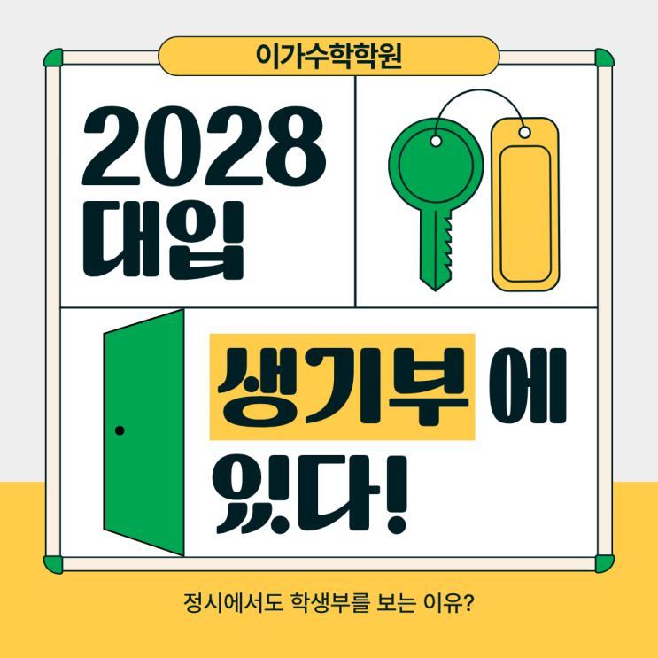 안녕하세요 학생들의 수학 공부에 진심인 서대문수학학원 이가수학학원입니다!! 고등학교 진학과 입시를 앞두고 많은 고민을 하고 계실 학부모님들께 차분히 현재 입시 흐름을 정리해 드리고자 이 글을 준비했습니다. 최근 2028 대입과 관련해 “정시는 어떻게 바뀌는지”, “내신과 학생부는 여전히 중요한지”, “지금부터 무엇을 준비해야 하는지”에 대한 문의가 계속 이어지고 있습니다. 입시 제도는 해마다 조금씩 바뀌지만, 그 변화의 방향을 정확히 이해하지 못하면 불필요한 불안이나 과도한 선행으로 이어지기 쉽습니다. 단편적인 정보나 과장된 해석이 아니라, 대학들이 실제로 무엇을 보고자 하는지, 그리고 지금 시점에서 학생....... <img src="https://blogthumb.pstatic.net/MjAyNTEyMTdfNzYg/MDAxNzY1OTYzNTMxMzU3.vg_xWwe9ZNy_Z8fnC_uKpQ0LBAKXoy_UCQsgLL0BuIkg.JkCwxb8vW8qYMrGxt8UApvCh6EyLn3NtNfXRgnZfPegg.PNG/%C1%A6%B8%F1%C0%BB_%C0%D4%B7%C2%C7%D8%C1%D6%BC%BC%BF%E4._%2818%29.png?type=s3" />
