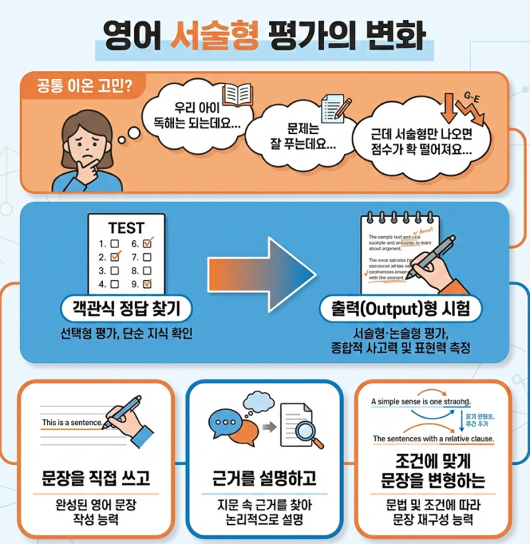 ✅고교학점제 시대, 중등 영어 준비의 기준이 달라졌습니다 안녕하세요. 상암동영어학원, 성산동영어학원 루체테어학원 마포상암캠퍼스 입니다. 중등 내신 영어, 예전처럼 문제만 잘 풀면 점수가 나오지 않습니다. 서술형 비중이 늘고, 문장 변형·영작·조건형 문제가 핵심이 되면서 중학교 때부터 ‘쓰는 영어’ 준비 여부가 성적을 가르고 있습니다. ✔ 5등급제 ✔ 고교학점제 ✔ 서·논술형 평가 확대 요즘 교육 흐름을 보면 분명한 공통점이 있습니다. 이제 영어는 ‘정답을 고르는 과목’이 아니라 생각을 정리해 표현하는 과목으로 바뀌고 있다는 점입니다. ✍️ “독해는 되는데 점수가 안 나오는” 이유 “읽는 영어와, 쓰는 영어는 전....... <img src="https://blogthumb.pstatic.net/MjAyNjAyMDJfMjA0/MDAxNzcwMDIyNzg5NDA3.LQq8UXcITLsn7Zxem2Uhcyy3vqpX7HsKvzPC0AR6k5cg.f-hceXjZz08JsAtHqvgb09Uf73gKs7FWoCp2A5wOFKwg.PNG/image.png?type=s3" />