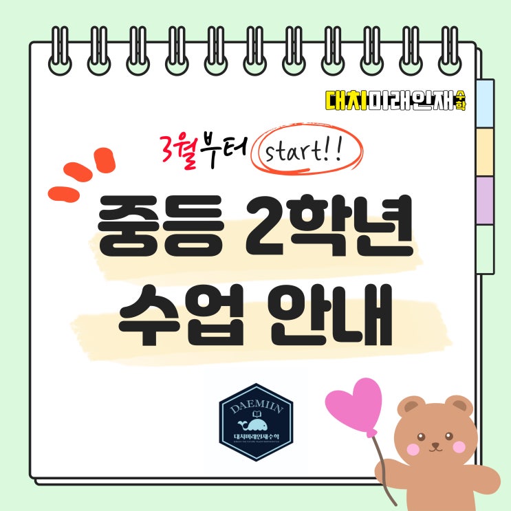 중등 2학년 3월 신규생 모집! 대치미래인재수학과 함께 목표 달성! 안녕하세요! 대치미래인재 수학학원입니다. 최근 중학교 1학년 2학기부터 지필평가를 시행하는 학교가 증가하면서, 학생들은 비교적 이른 시기에 중등 내신 평가 체계를 경험하게 되는데요. 중학교 2학년 수학은 단순한 ‘시험 경험’의 연장이 아닌, 학습 구조와 사고 수준이 본격적으로 전환되는 시기로 중등 내신 경쟁력을 좌우하는 중요한 기준점이 됩니다. 따라서 중2 수학은 단기 성적 향상에 초점을 두기보다, 개념 이해와 문제 해결력을 체계적으로 쌓아가는 것이 중요한데요! 대치미래인재수학은 학년별 학습 특성과 평가 흐름을 반영한 수업을 통해, 학생들이 흔....... <img src="https://blogthumb.pstatic.net/MjAyNjAyMTNfMTE2/MDAxNzcwOTUyMTM4OTcw.tUaUX5j9u4rBkQRK_4NQdQkxOeyAkINT1wjZ-jT1VKUg.N208joR-yiPKdNYHK9kjYQaWAD6Gw1ONBhntEbz346wg.JPEG/002.jpg?type=s3" />
