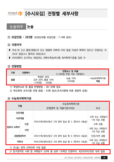 [대치동 논술]27학년도 동대 논술전형 시행계획