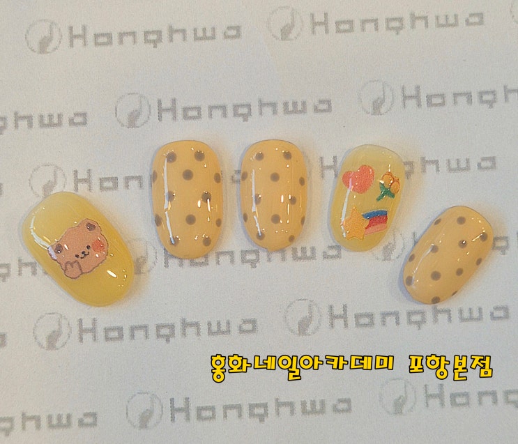 포항네일전문학원 홍화네일아카데미 교육문의 231.6252 안녕하세요 포항네일전문학원 홍화네일아카데미입니다~ 오늘은 우리 학원 학생님의 아트사진 소개해드려요~~ ♡ 오늘의 아트는 도트아트랍니다~ 어떤가요~~? 노란바탕에 브라운 도트를 콕콕 찍어주었는데요 귀여운 스티커들을 더해 아트 한세트를 완성해주었답니다ㅎㅎ 도트 아트같은 경우에는 바탕색과 어울리는 컬러를 선택하고 최대한 일정한 크기와 간격으로 도트봉을 사용해 콕콕 찍어주면되는데요 도트봉에 찍는 젤의 양을 잘 적절하게 조절해주시면 조금 더 수월하게 할수있답니다~ 브러쉬, 도트봉같은 도구를 사용할때는 젤의 양 조절은 필수!! 방문 상담예약 054.231.6252 010.755....... <img src="https://blogthumb.pstatic.net/MjAyNTEyMDNfODgg/MDAxNzY0NzI5MzUxNTkz.7DrckTG4ZSM-FKr_FtuCeL_OOLpObOZLdInqYw6l760g.DFPZd54Jc8xmyHKfsDtSbmuo1NpWsjVFbPavTV8U1pAg.JPEG/%B5%B5%C6%AE3.jpg?type=s3" />