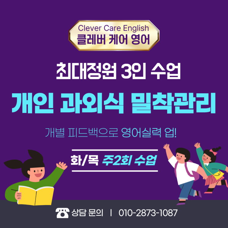 "학원을 다녔어도 우리 아이 영어는 제자리인가요?" 김포 고촌 캐슬앤파밀리에시티 1단지에 새롭게 문을 여는 클레버 케어 영어 공부방 원장 제시카입니다. 오랜 시간 아이들을 가르치며 깨달은 한 가지 강남에 있는 어학원, 개인 과외, 그룹 과외, 프랜차이즈 영어 운영, 거의 10년을 영어 교육 현장에서 보내며 확신하게 된 게 있습니다. "영어 실력은 IQ가 아니라, 옆에서 누가 얼마나 꾸준히 지켜봐 주느냐에 달려 있다." 똑같은 교재를 써도, 어떤 아이는 쑥쑥 느는데 어떤 아이는 제자리 걸음인 이유가 뭘까요? 바로 그 아이에게 맞는 방식으로 반복 지도를 받았는지, 누가 꾸준히 옆에서 체크해줬는지의 차이였습니다....... <img src="https://blogthumb.pstatic.net/MjAyNjAxMTFfMjY3/MDAxNzY4MTE4MTUxMTI5.b6qINqUcm74X8vBHbBNm4WPRLsqxDSgixvLhb4f89Q4g.CRJ3OH_zZAaPNXmtFQDpR8oR3WO6OpYtOLNxtAv97zYg.PNG/KakaoTalk_20260108_200812591.png?type=s3" />