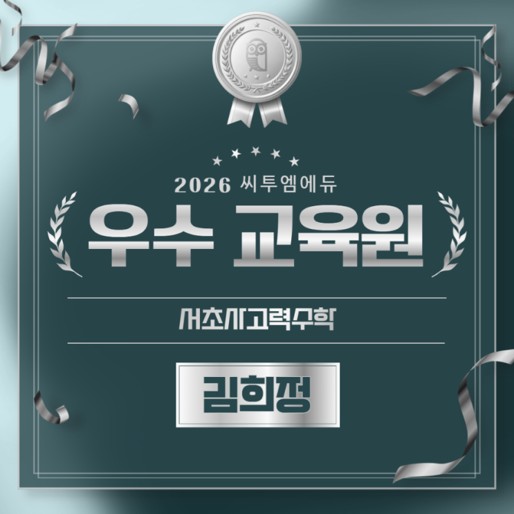 2025년 한해의 마무리 하는 12월~ #씨투엠사고력수학 우수 교육원으로 선정 되었습니다!! 학부모님들께서 믿고 보내주신 덕분에 이런 결과가 있습니다!! 항상 감사 또 감사합니다 우리 학부모님들께서는 진짜 늘~칭찬과 축하도 많이 해주십니다❤️ (제가 어깨가 늘 들썩들썩한 이유) 서초동에서 제일 작고 귀여운(?) #서초사고력수학 이지만~ 요즘 서초동 어머니들께서 동네에~초록색 가방밖에 안보인다고 해주셔서 뿌듯하게 지내고 있습니다~^^ (서초사고력수학 가방이 초록색임) 2025년 한해를 참 열심히 살아온게 뿌듯합니다 ~!!! 2026년에도 또 얼마나 재밌게 행복하게 수업할 지 기대가 됩니당~!!! 늘 감사하는 마음으로 겸손....... <img src="https://blogthumb.pstatic.net/MjAyNTEyMTFfMTg4/MDAxNzY1NDA3OTk3NzU0.wSd97lYcuYKHKgLydifOuq8c0y61PbJOhdsuGJk7UFgg.CidbzT76Ar7D5gzyvBKDdGW_8xcuitNqWrpLr8qWyA4g.PNG/900%A3%DF1765330124606.png?type=s3" />