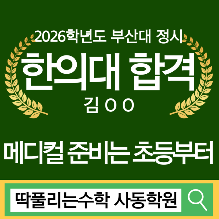 경산사동수학학원 딱풀리는수학사동학원|부산대한의대 합격으로 증명된 수학·과학 학습 관리