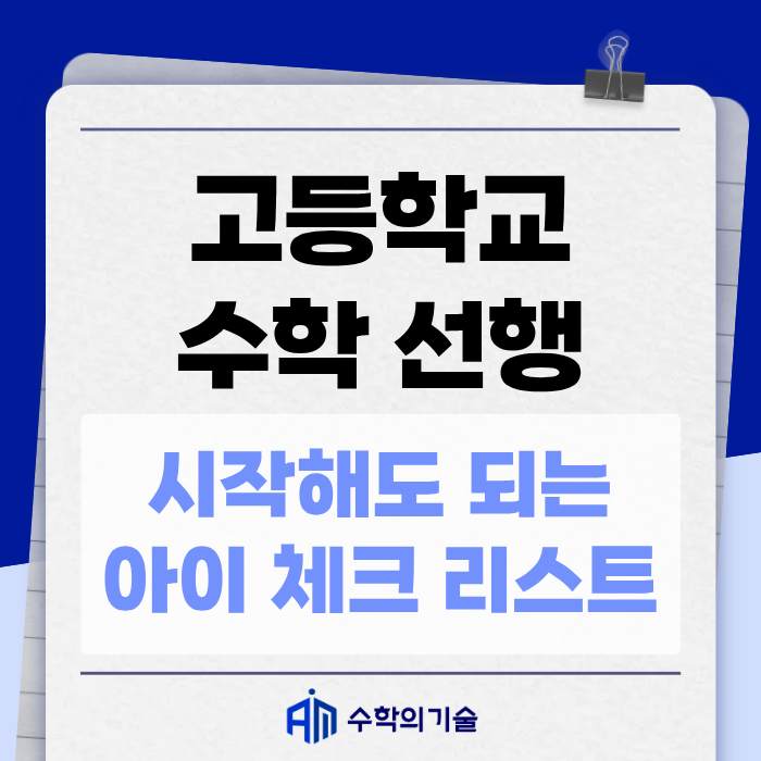 안녕하세요. 대치동 수학의기술입니다. 겨울방학 기간 고등수학 선행 상담에서 가장 가장 많이 받는 질문이 있습니다. 주변에서는 선행 다 한다는데, 우리 아이도 지금 시작해도 괜찮을까요? 하지만 고등수학 선행은 시기보다 상태가 더 중요합니다. 같은 중2라도 누군가는 선행이 약이 되고, 누군가는 고등학교에서까지 영향을 주는 독이 됩니다. 막연한 불안이나 주변 분위기에 휩쓸려 결정하기보다는 지금 우리 아이가 선행을 감당할 수 있는 상태인지 먼저 점검해보는 것이 필수적입니다. 아래 기준을 체크리스트를 통해 확인해보시길 바랍니다. ◆ 체크리스트 1 - 중등 연산이 빠르고 정확한가 · 사칙연산, 분수·소수 계산에서 실수가 잦지....... <img src="https://blogthumb.pstatic.net/MjAyNjAyMDlfNDAg/MDAxNzcwNjMzNDM1NTcw.KVSfJYox7SEDuJjK-OzttYN_XEOMrpMPbQkaUoegoU4g.QLZ6S1xP7t2MnIDls1FkWJ7-2bTggLwwiSAkUhbOviUg.PNG/%C1%A6%B8%F1%C0%BB_%C0%D4%B7%C2%C7%D8%C1%D6%BC%BC%BF%E4..png?type=s3" />